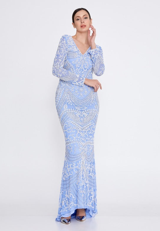 Effortlessly command attention with a dress that shimmers and shines, creating an aura of timeless allure for your special occasion. The interplay of textures and the thoughtful design ensure you become the focal point, captivating everyone in the room. This dress is more than just an article of clothing; it's a manifestation of your radiant personality, promising an evening filled with style and sophistication.
